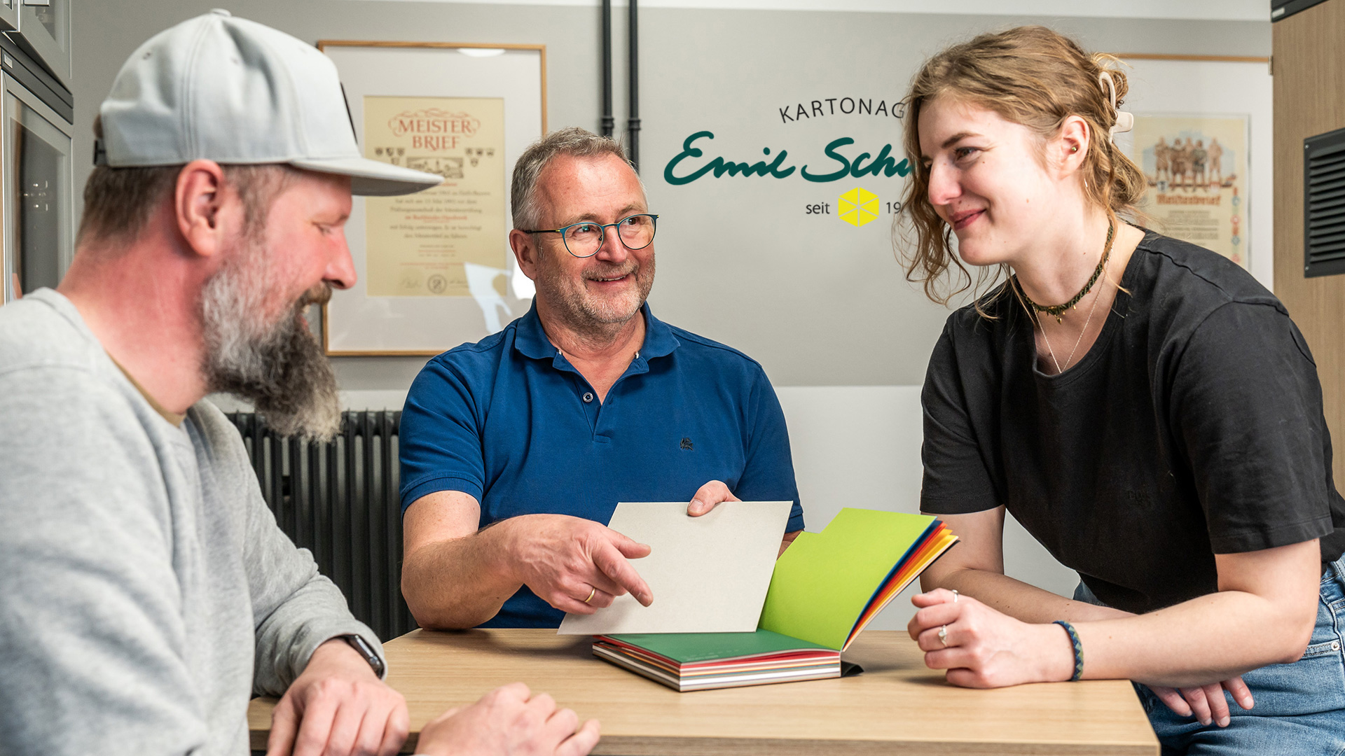 Am Beginn unserer Arbeit steht immer der gemeinsame Entwicklungsprozess. Wir beraten Sie zu Material, Veredelung, Größe, Stückzahlen und vielen anderen Punkten, die für Ihr Produkt ausschlaggebend sein können.